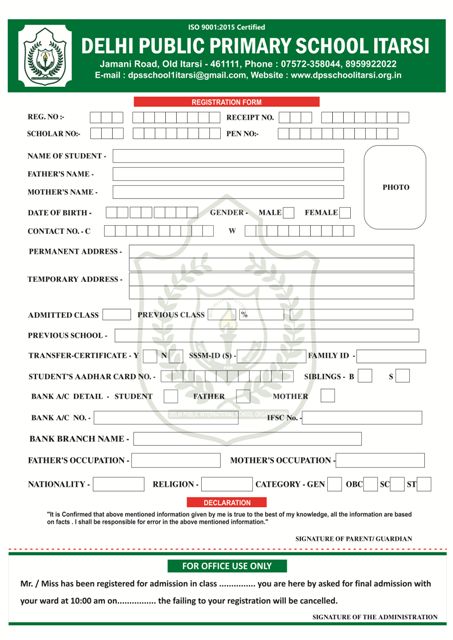 REGISTRATION FORM FOR SESSION 2024-25
